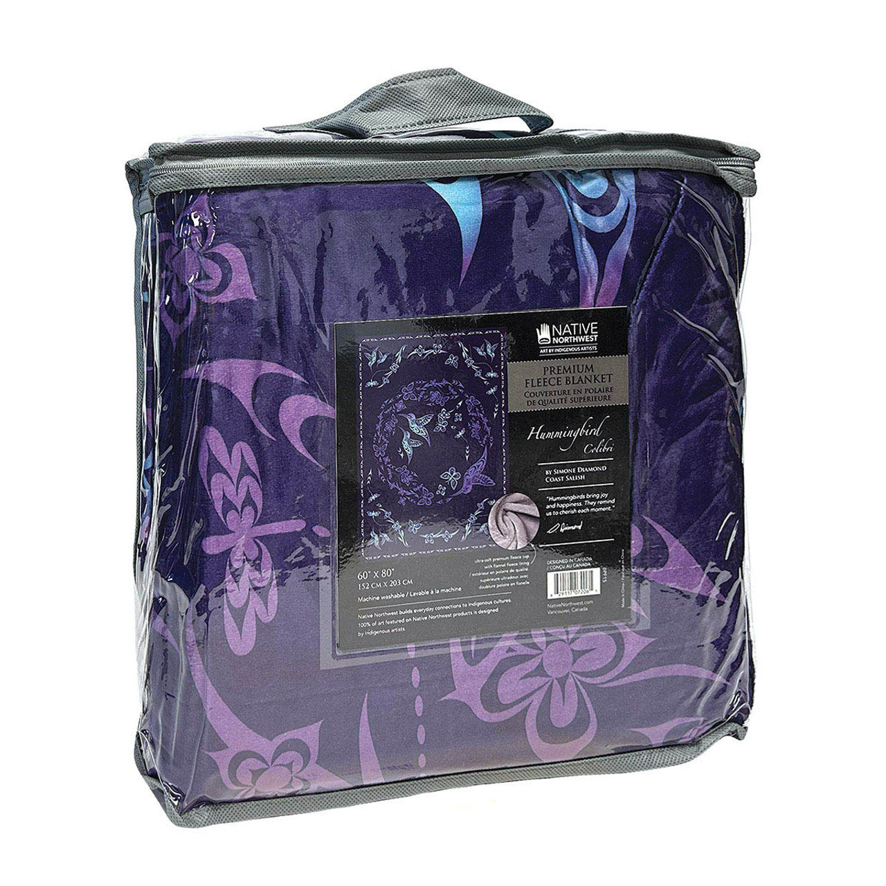 Discover the Premium Fleece Blanket - Hummingbird by Simone Diamond, a luxurious 60" x 80" velour-style blanket crafted from 100% polyester. Featuring stunning Indigenous artwork, this double-layered blanket combines a soft flannel-fleece inner lining with a shimmering Premium Fleece top for unmatched comfort and warmth. Designed for versatility, it’s perfect for enhancing your home, honoring ceremonies, or giving as a meaningful gift. Experience the blend of artistry and plush softness in every use.