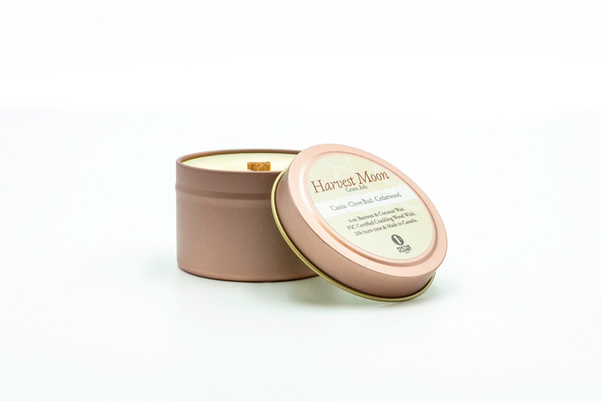 - Burn times: tin 4 oz (15-20 hours), 5.5oz (27 hours), 8.5oz (40 hours), 11oz (52 hours)