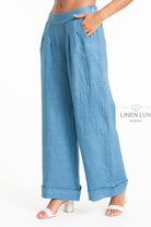 The French Linen Pants in denim color are expertly crafted from premium-quality linen. Their classic design and soft texture make them a versatile addition to your wardrobe. Perfect for any occasion, these pants provide a comfortable and stylish option for everyday wear.