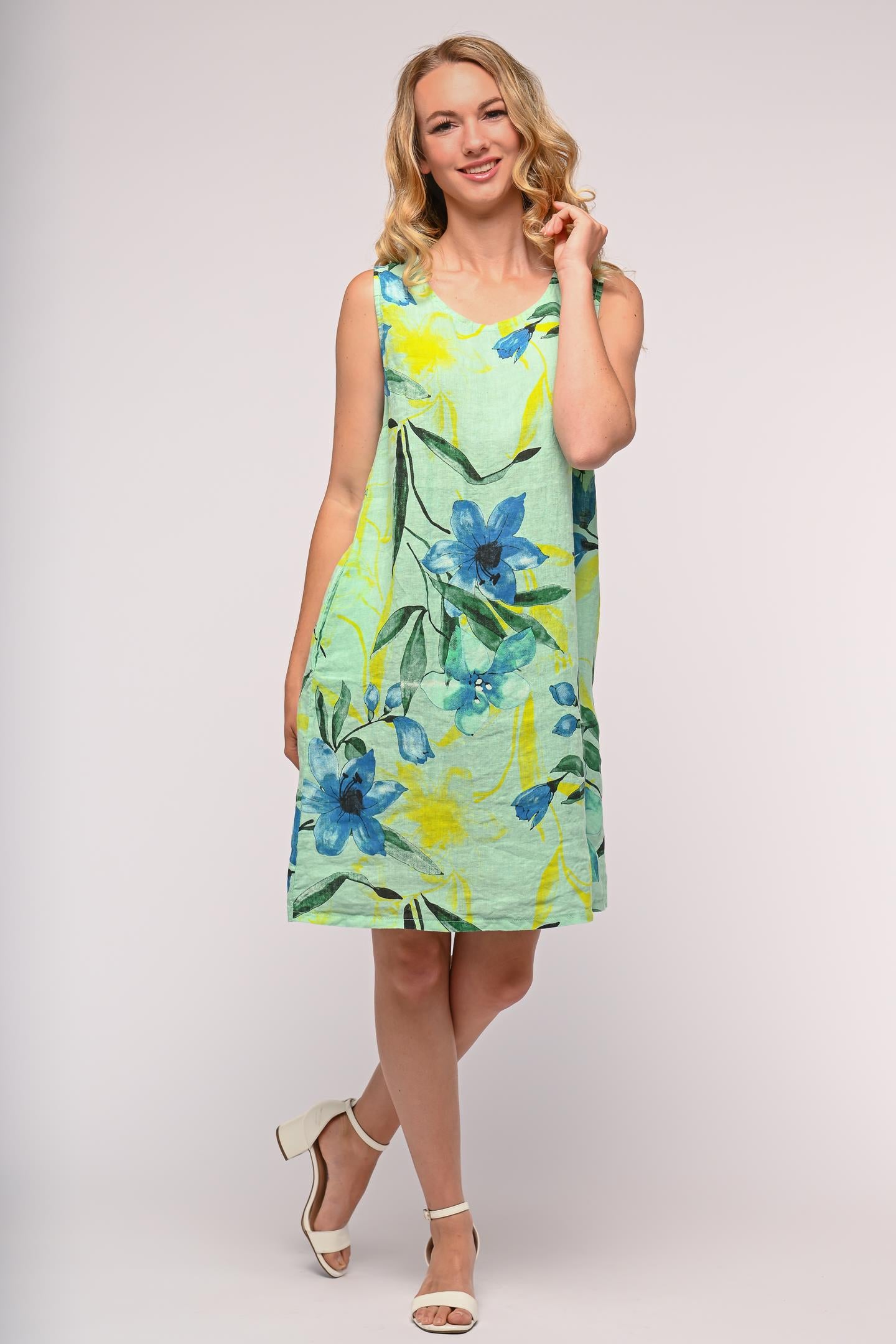 Aqua Floral Linen Dress