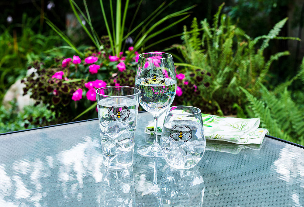 Sweeten your favourite vintage or mixed drink with this stylish Frosted Bee & Crest Goblet. Crafted out of acrylic for worry-free durability, this handsome frosted goblet is accented with a subtle crowned bee crest in grey generously oversized for perfect pool or dockside sipping all day long!