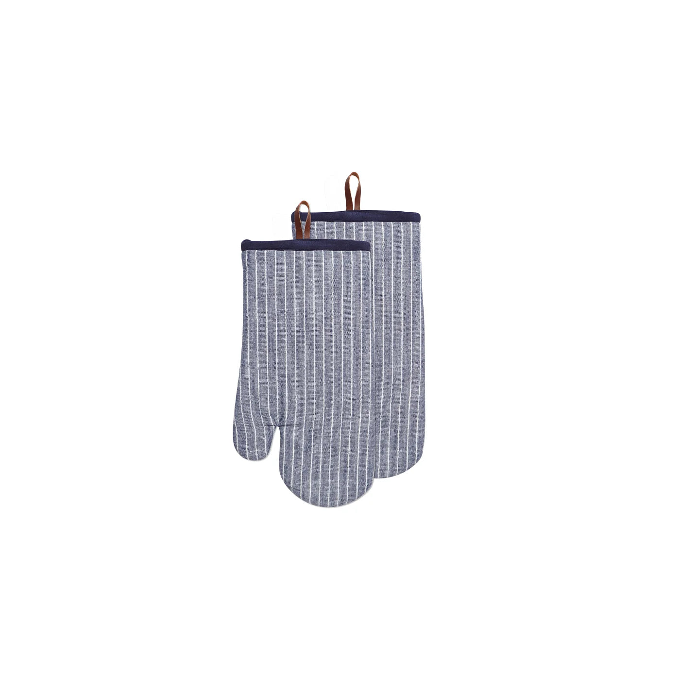 Chambray Stripe Oven Mitt Set of 2 Blue