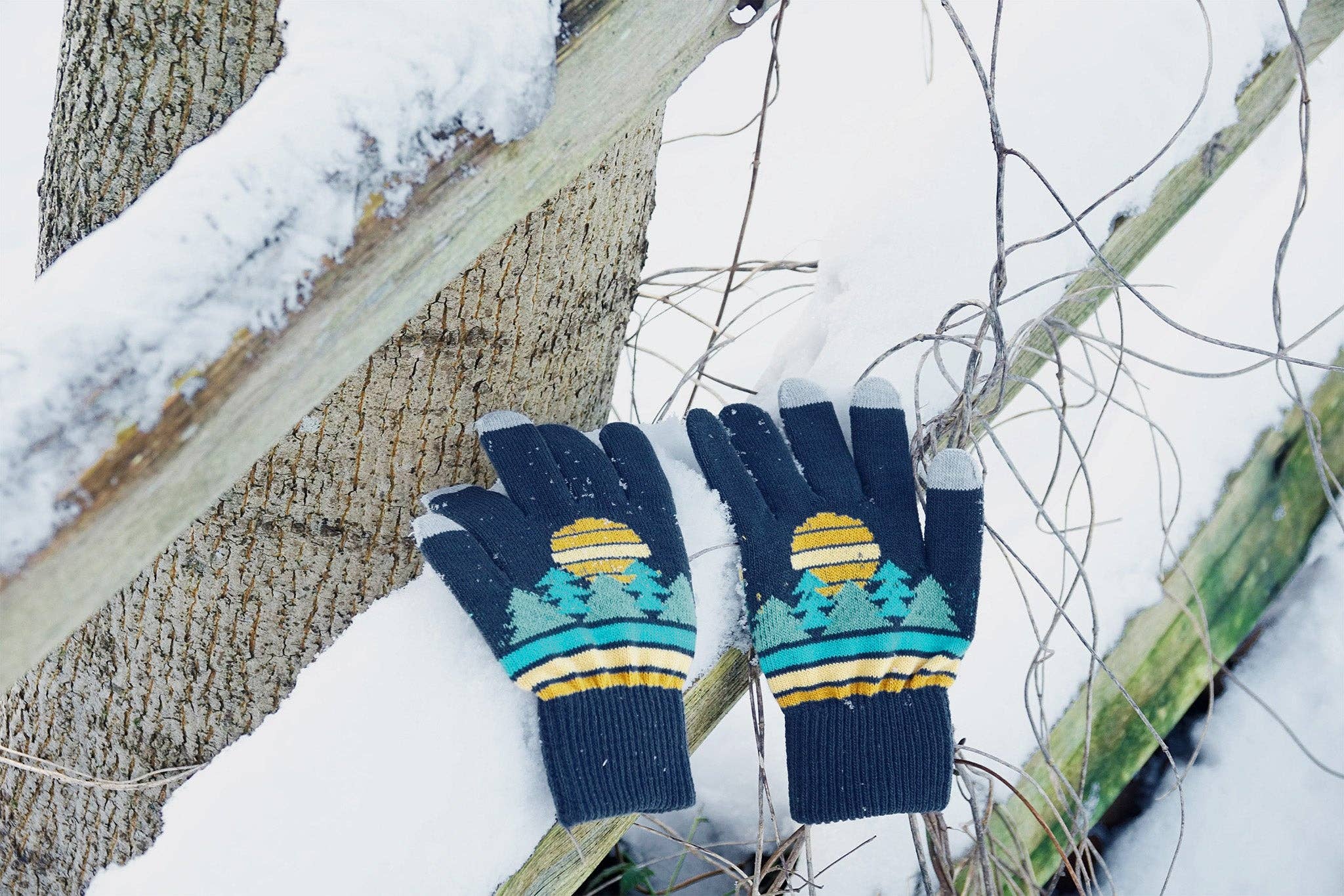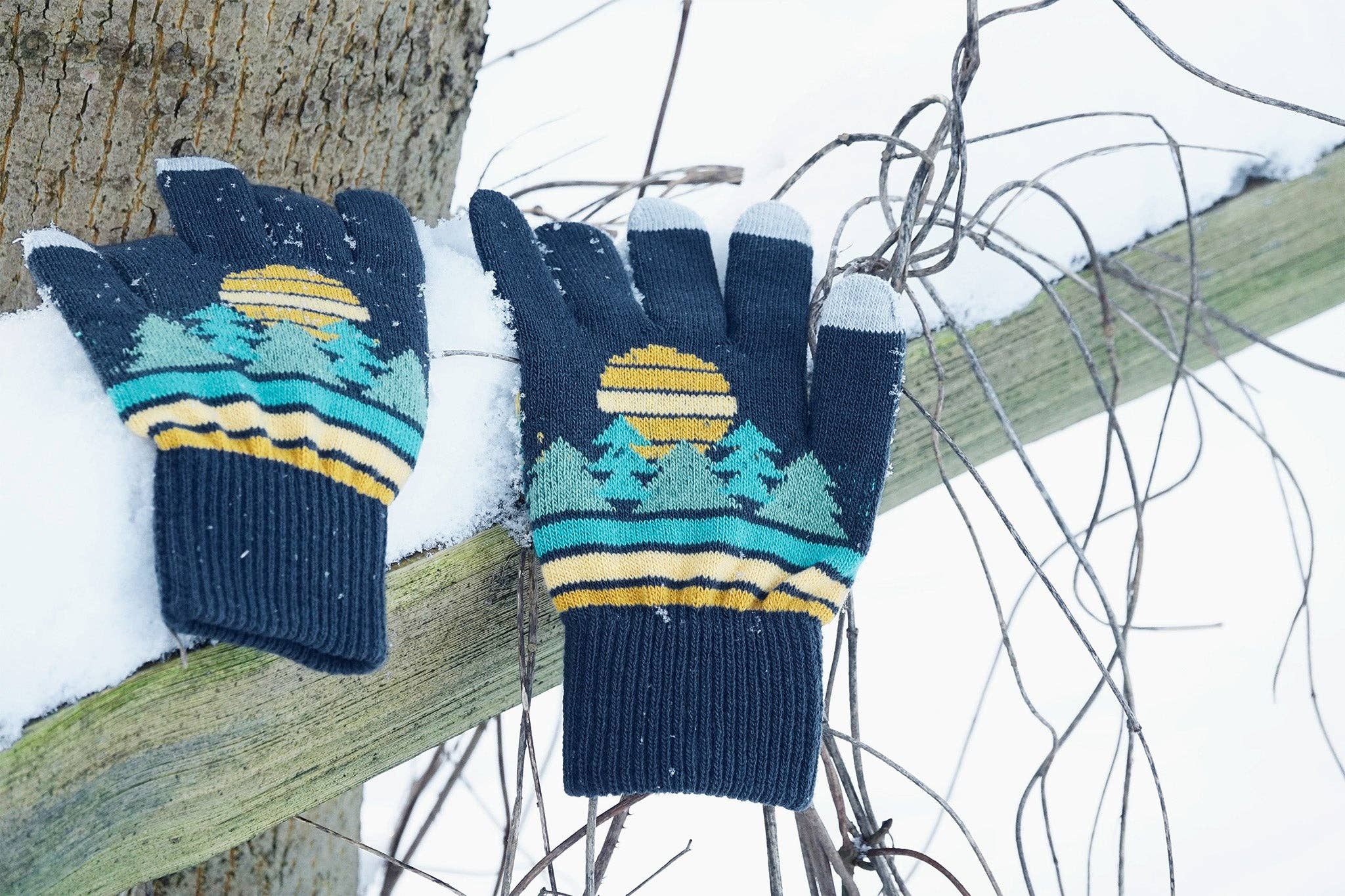 Capture the serenity of the early morning woods with the Daybreak Woods gloves. The knitted pattern depicts a peaceful forest scene at dawn, perfect for outdoor enthusiasts who love quiet mornings in nature, offering comfort, warmth, and timeless style.
