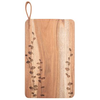 Created with delicate style in mind while being durable and functional. This cutting board is stylish to present appetizers on or to serve sliced bread with a meal. Made from acacia wood and stained a deep ebony tone, this etched cutting board makes a bold statement on your dining table.