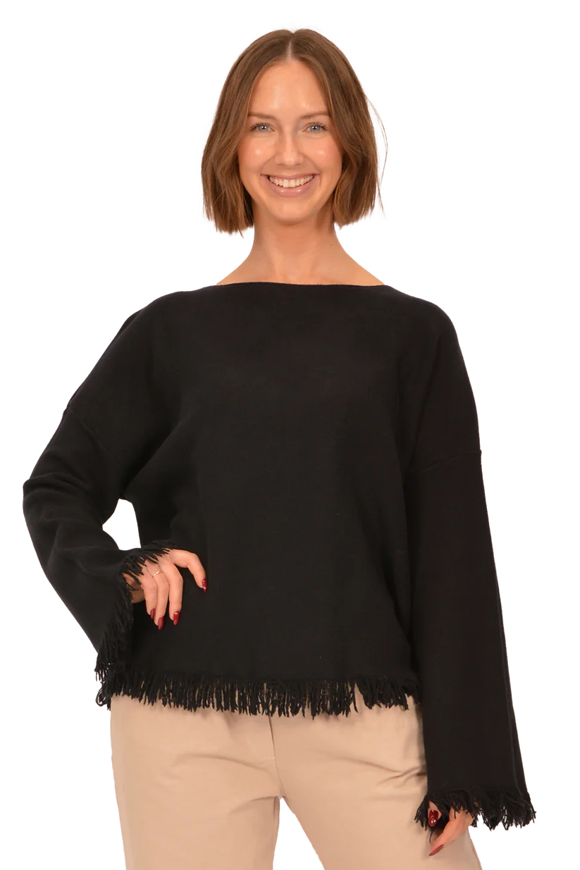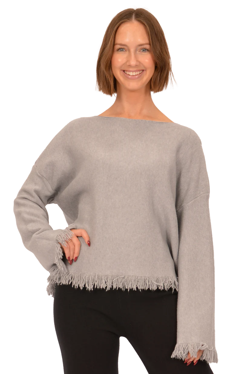 Stay on the edge (literally) with our Frayed Edge Sweater! With a unique frayed edge design, this sweater is perfect for those who like to add a touch of edginess to their style. Stay warm and stylish at the same time with this must-have sweater.