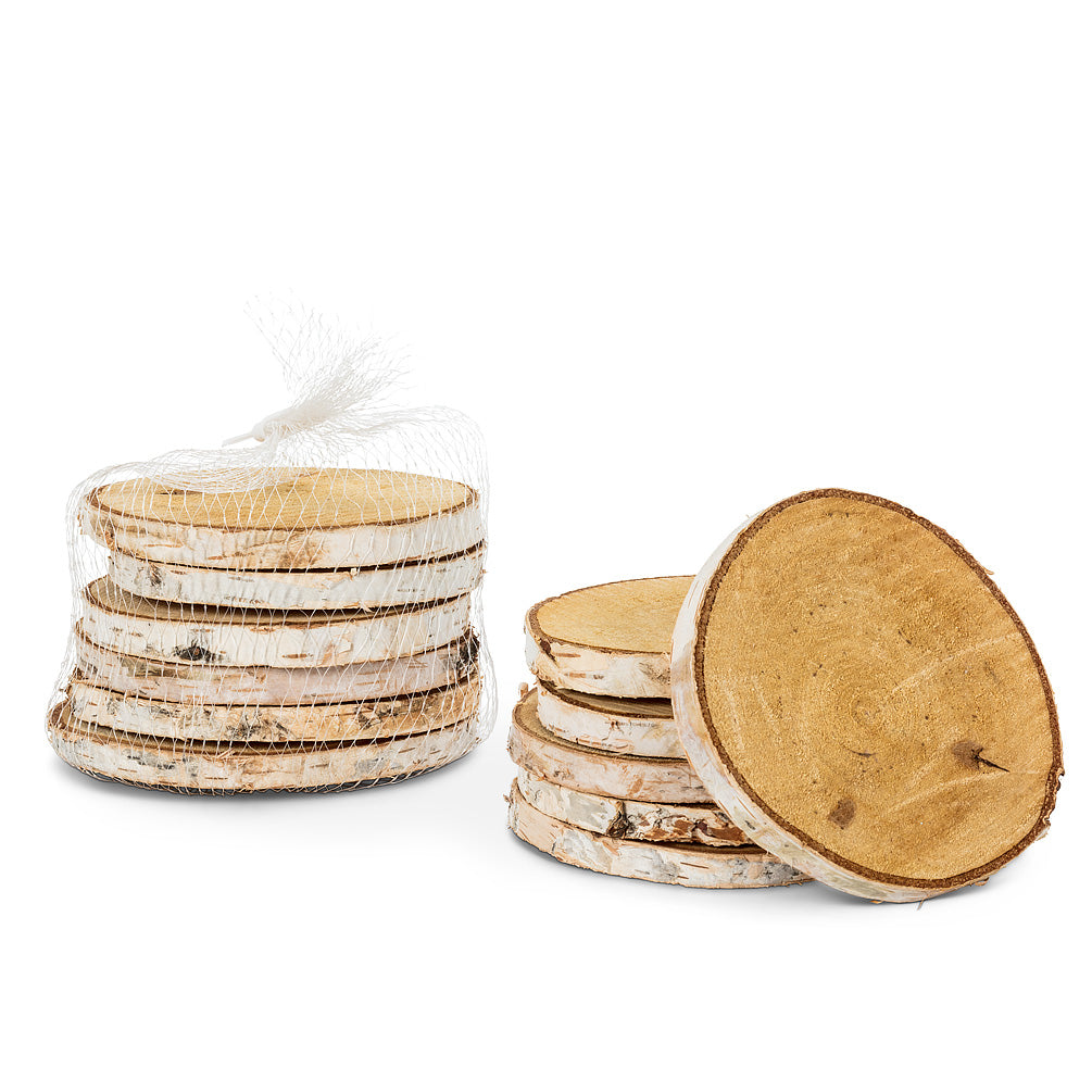 This set of 6 natural birch coasters is perfect for keeping your surfaces dry while adding a touch of nature to your decor. With natural variations in colour and design, no two discs are exactly alike. These rustic coasters complement any decor, from minimalist and modern to the classic cottage look.
