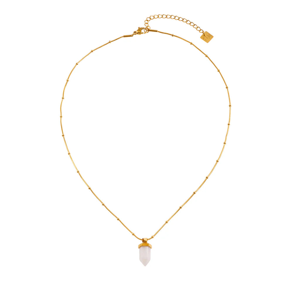 Experience the mystical charm of our MAKEDA necklace, featuring a dreamy pale lilac Amethyst stone pendant anchored on a beaded snake skin-textured chain. This alluring piece combines the sensuous texture of a serpent with the tranquil elegance of Amethyst, creating a one-of-a-kind accessory that is both subtle and refined. Each stone is unique in color, adding to the natural beauty of the design. Discover the healing properties of Amethyst and enhance your well-being with this luxurious necklace, designed using premium grade metals and coated in opulent 18 karat pure gold and silver tones.