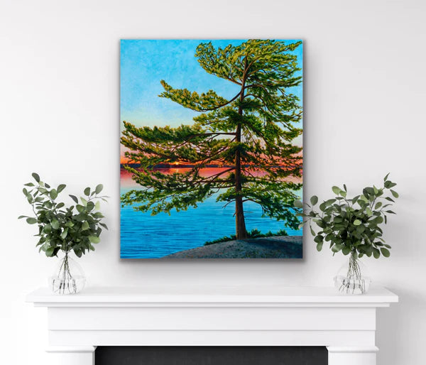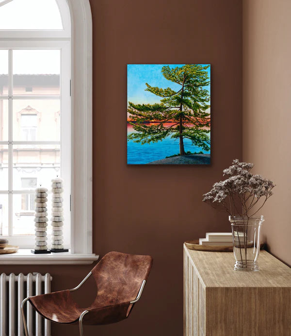 This print is a smaller sized reproduction of the original painting "Dancing Pine" (36"x30") by Melissa Jean.