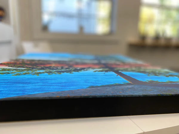 High Quality Canvas Art Print, Mounted on a 1.25”/1.75" thick wooden stretcher, with sides painted black... so it's ready to hang as is, for a contemporary look, and doesn't need to be framed.