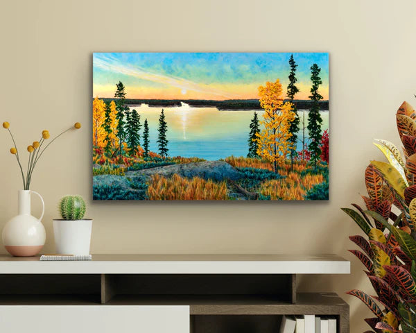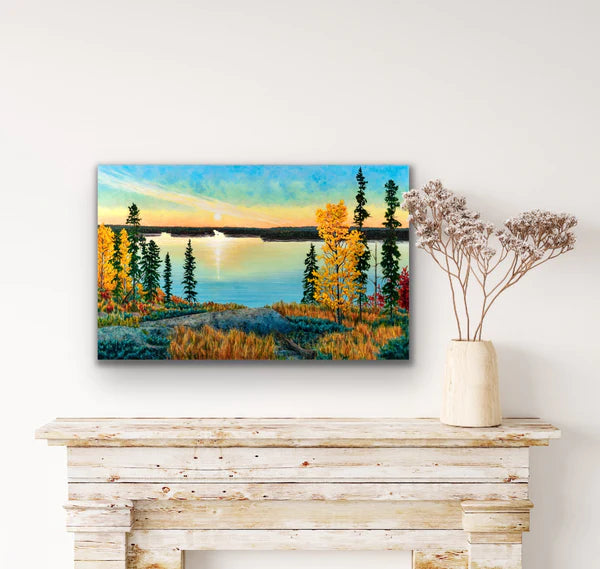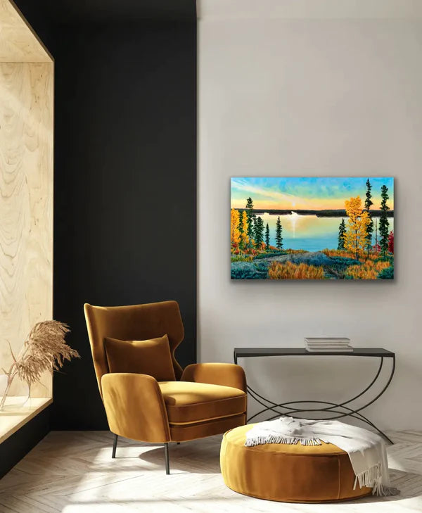 This print is a smaller sized reproduction of the original painting "October Morn", 30"x48" by Melissa Jean.