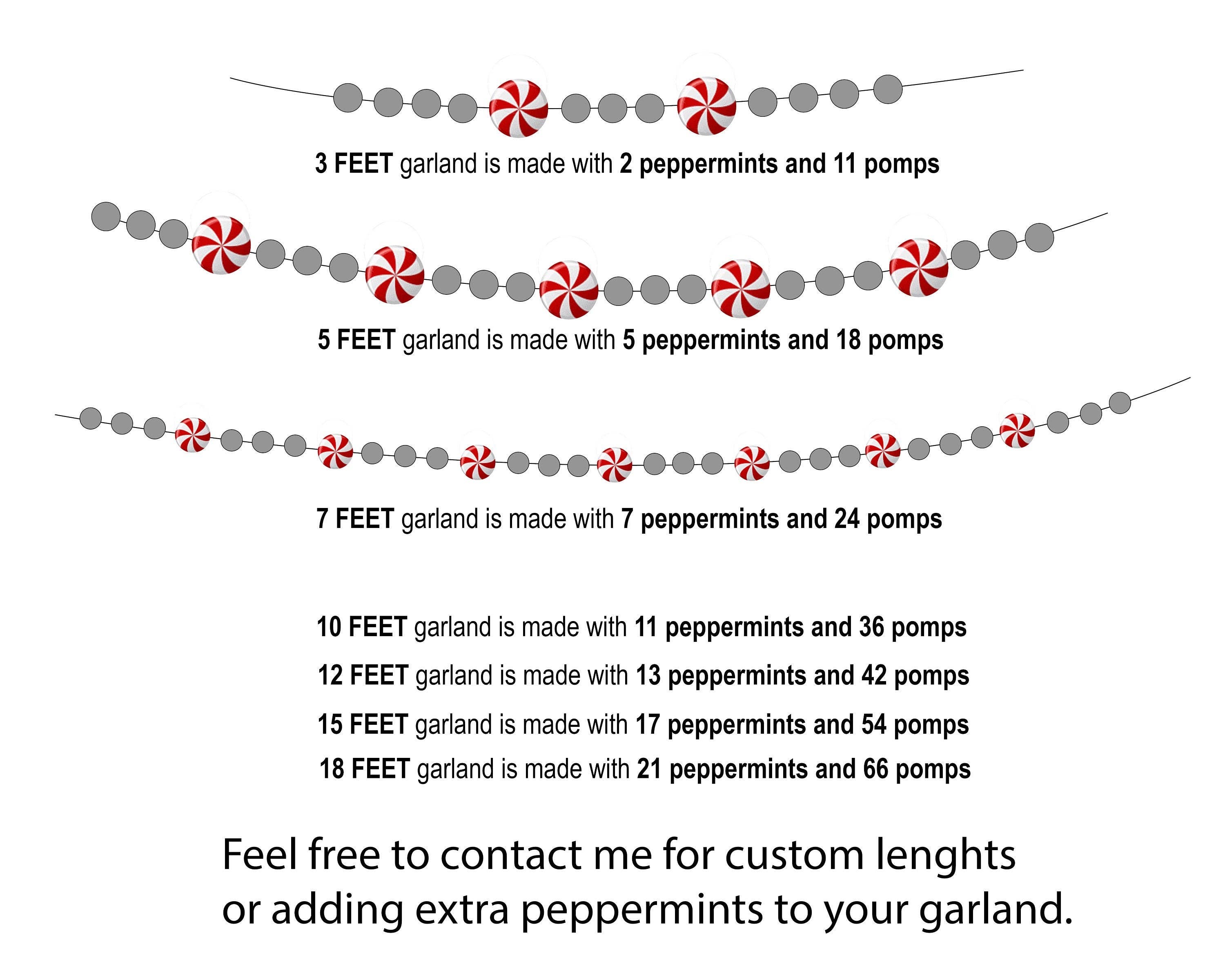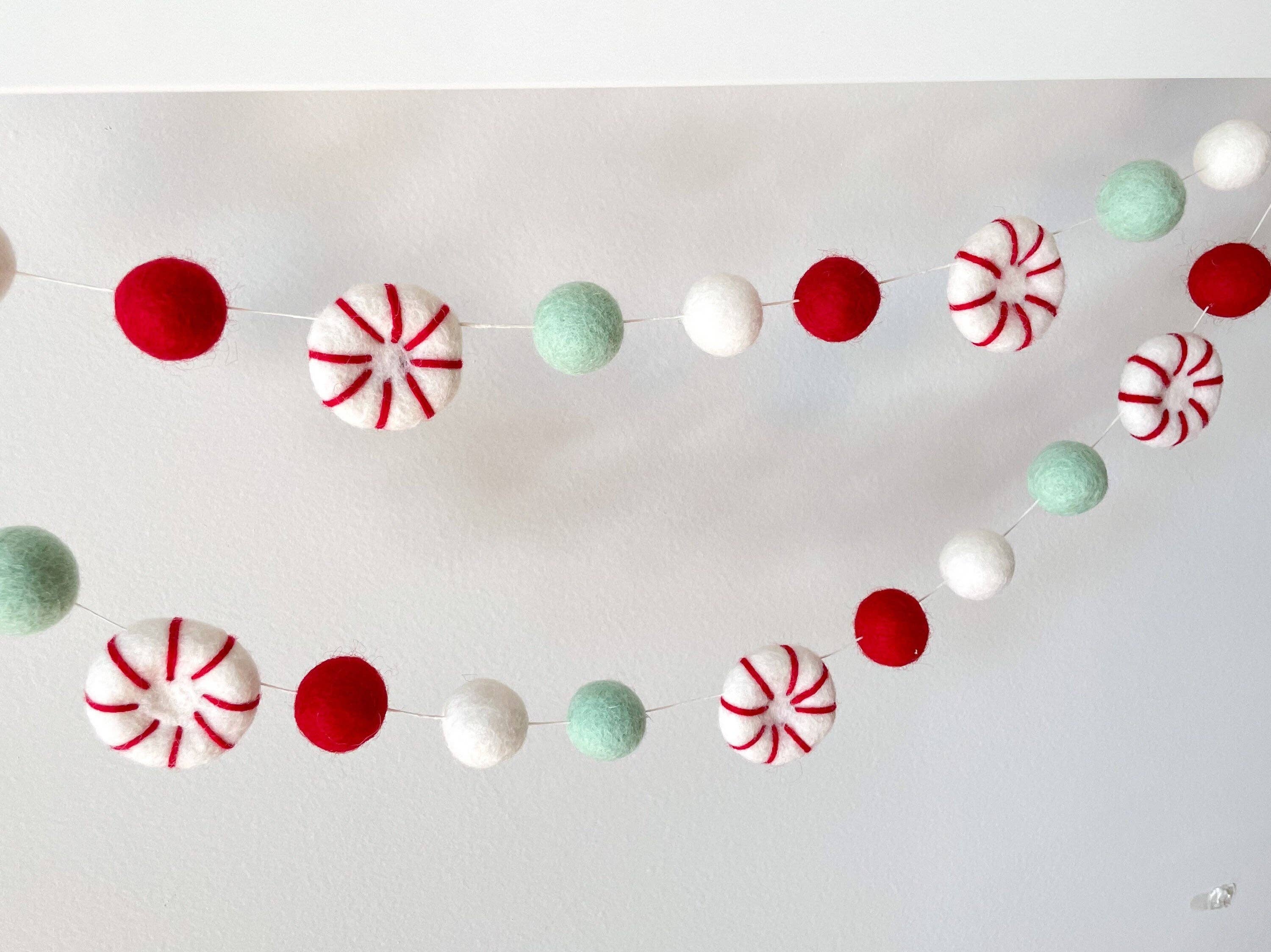 Peppermint Mint - Holiday felt pom pom garland: 3 feet