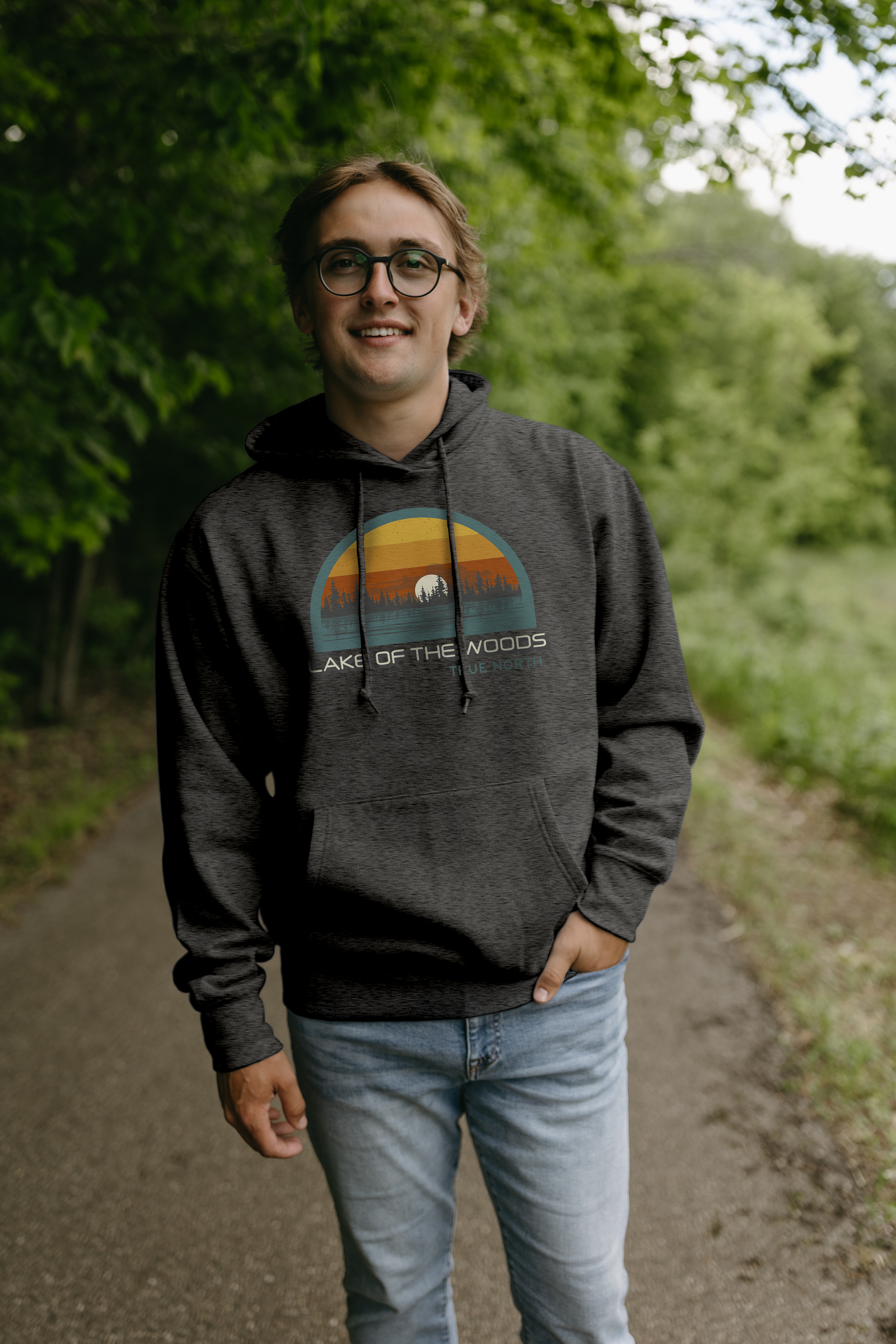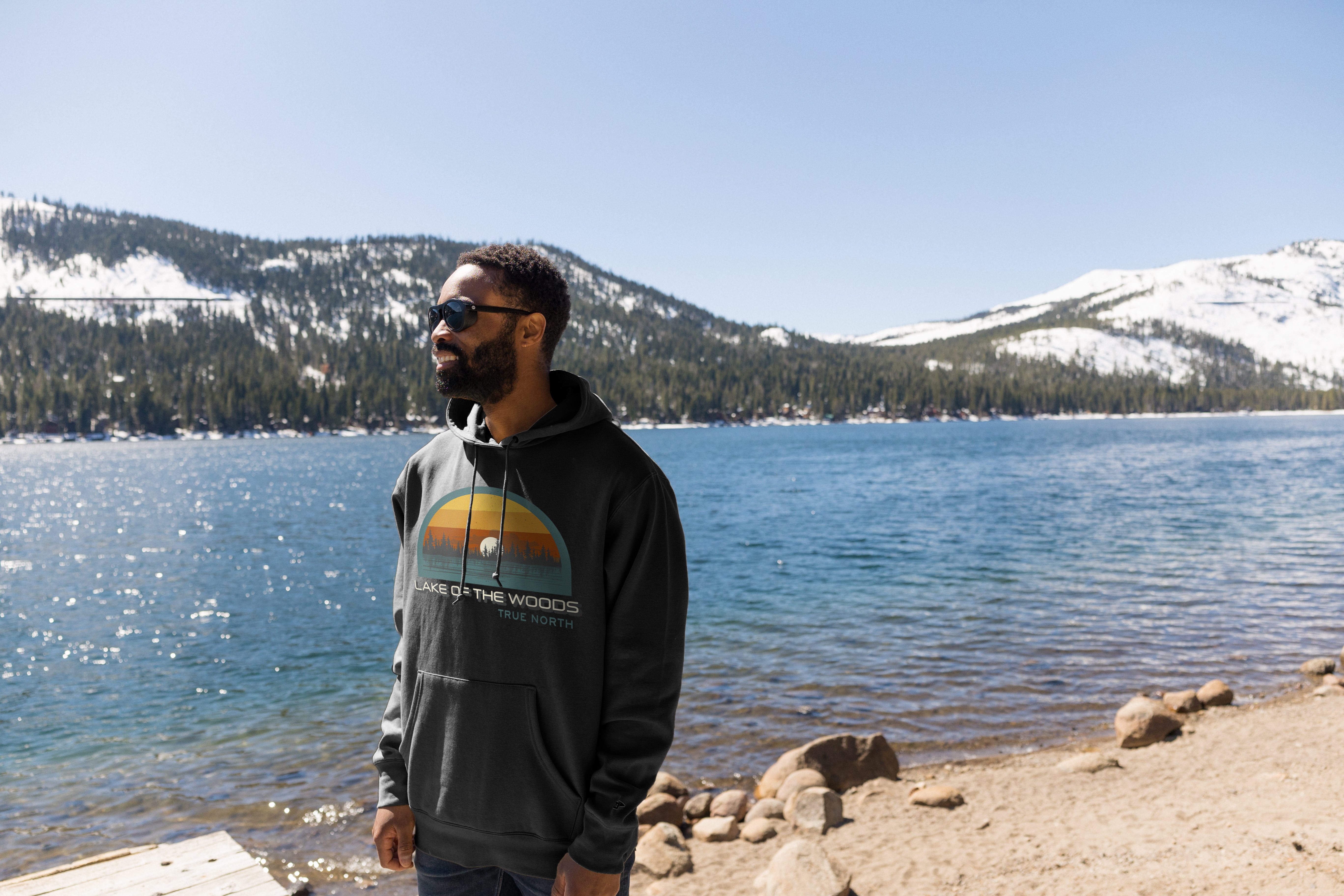 Feel the warmth of the North with our Pine Sunset Hoodie in charcoal! This cozy and stylish hoodie features a stunning sunset lake design that will transport you to the peaceful and picturesque landscape of True North Canada. Perfect for chilly evenings by the lake or a casual day out.