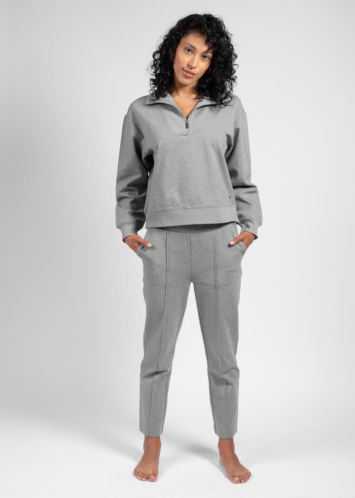 When we say Perfect Ponte, we mean The Perfect Ponte! This zip mock-neck pullover top is made in a super comfy double knit fabric with a firm stretch that gives a stable structure for a little bit of tailoring adding extra sophisticated yet simple styling. Pair this with the matchin Perfect Ponte Pant or any of your other fave lounge bottoms.
