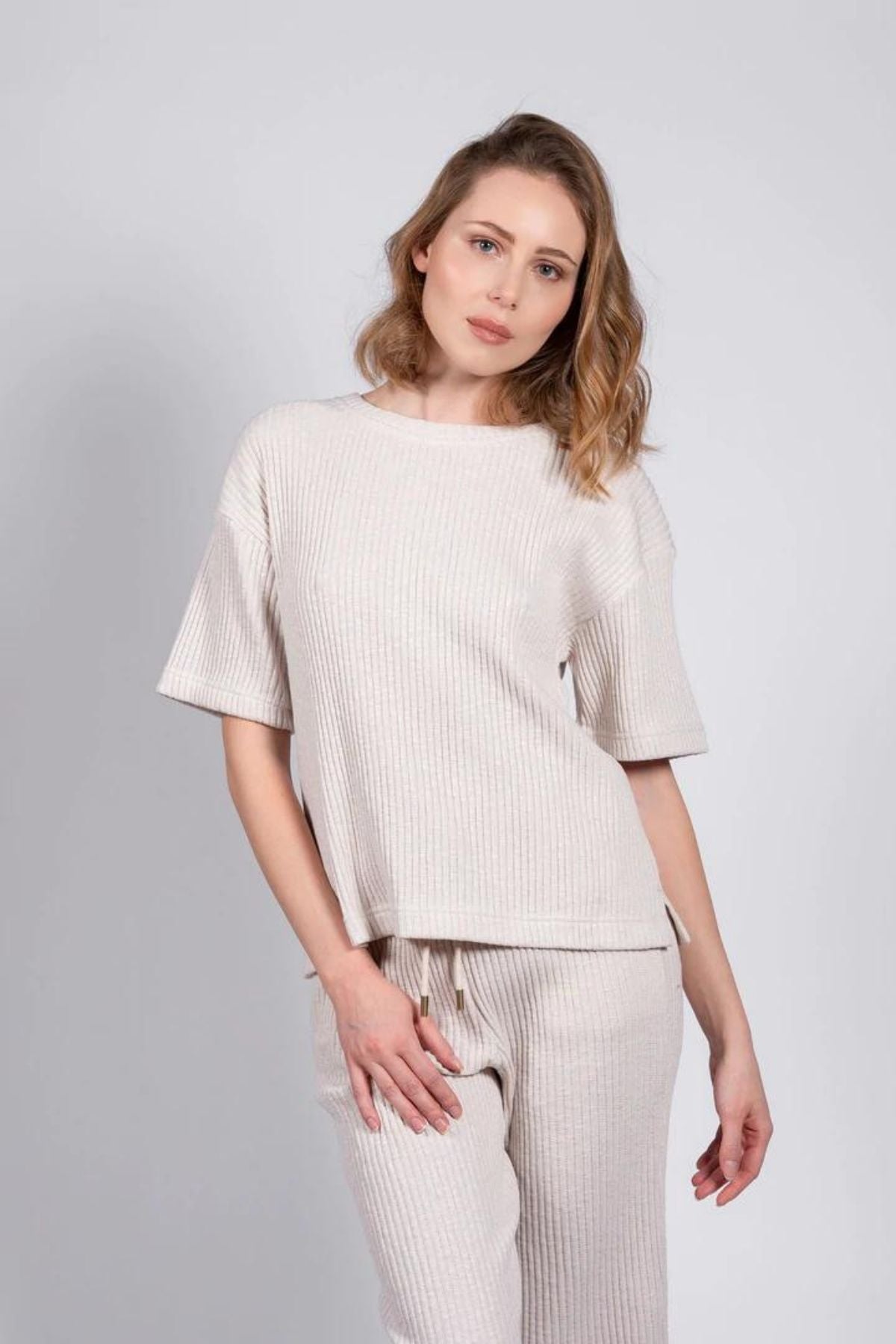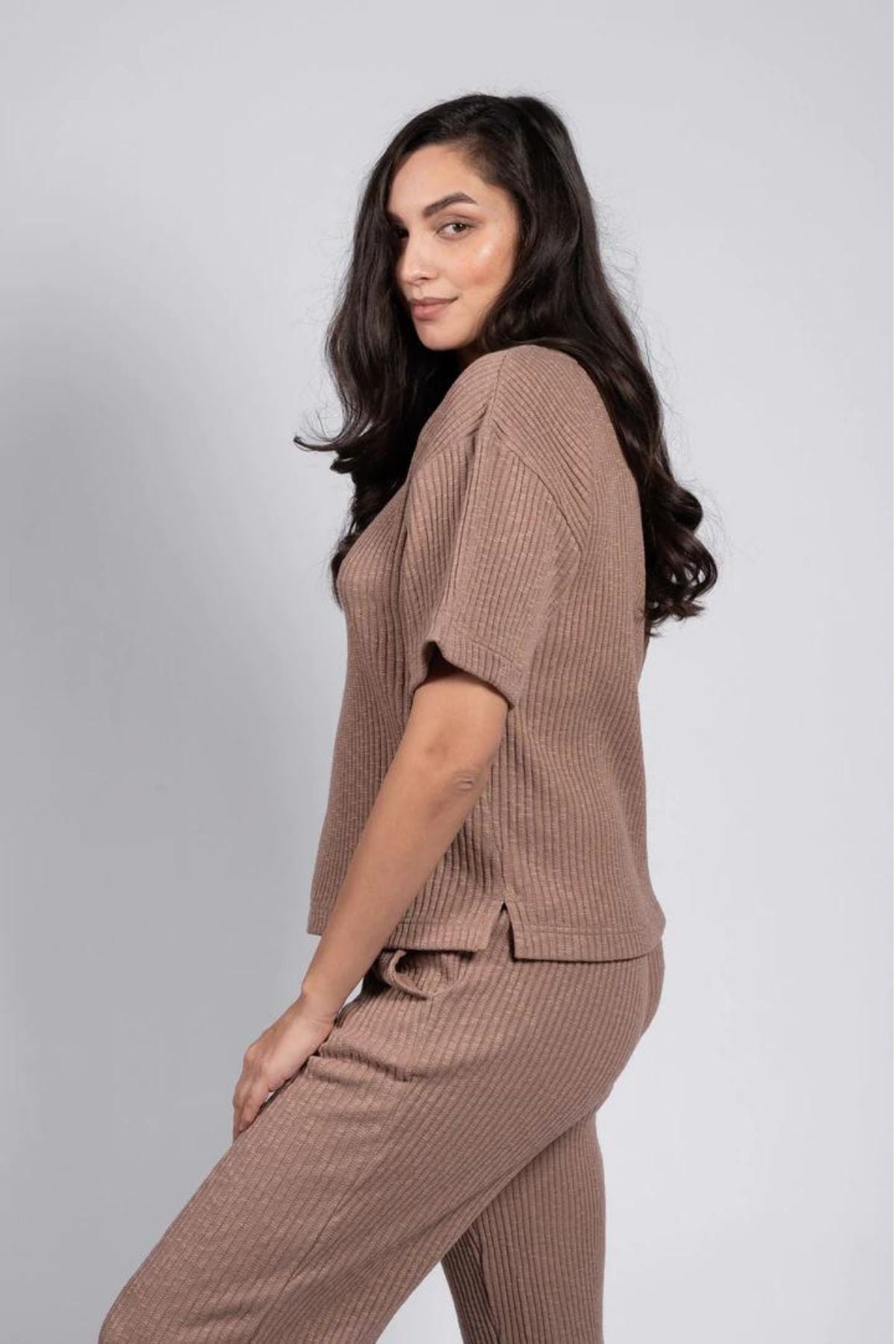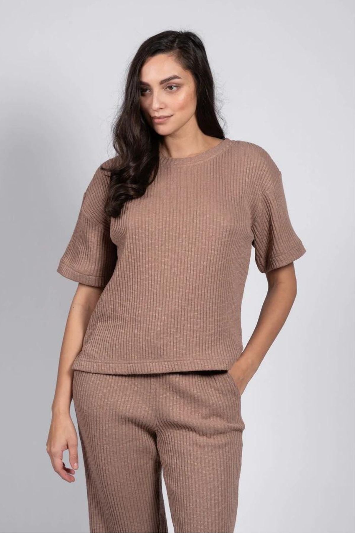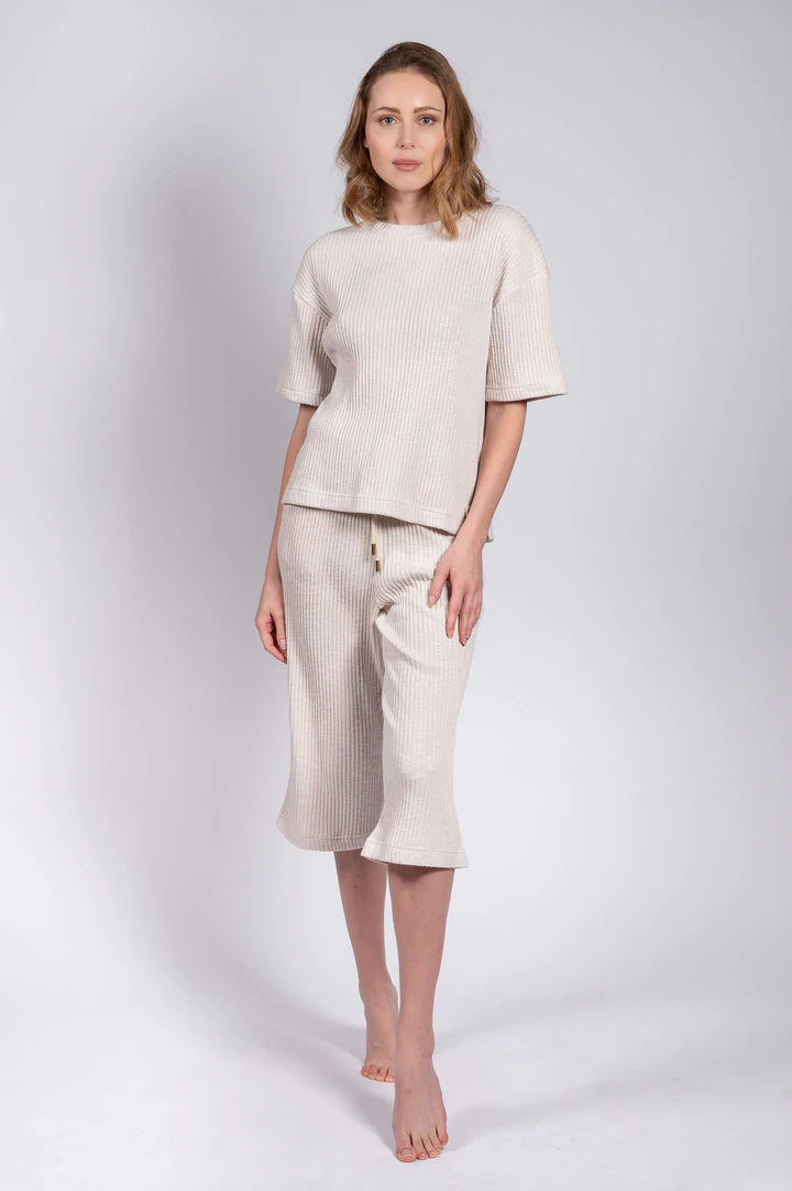This super loungey and relaxed ribbed knit tee is going to be one of your go-to-faves in your loungewear wardrobe! Wear it at home paired with the Rib Lounge Cropped Pant or swap the knit for your favorite jeans when you step out for some fresh air. Get full milage out of this lounge tee and satisfy your loungewear soul for indoors and out!