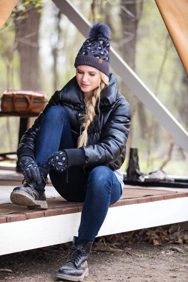 Worn to be wild. Our decadently soft knit hats show off your love of animal print with a vegan fur pom to keep your conscious clear. A trendy staple for your cold weather wardrobe.