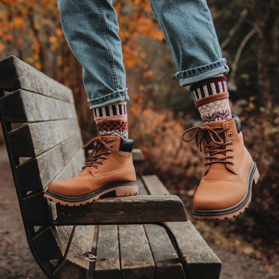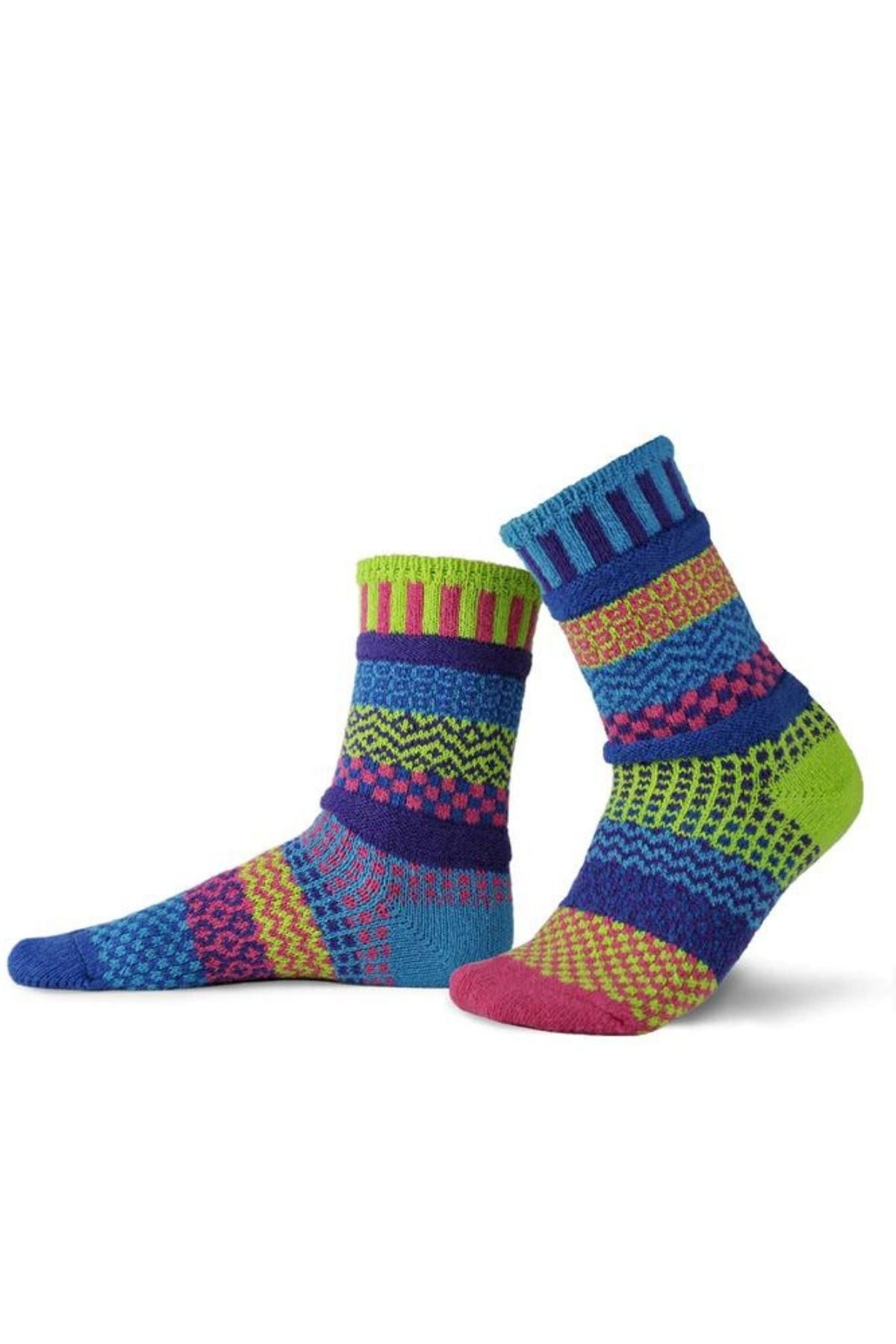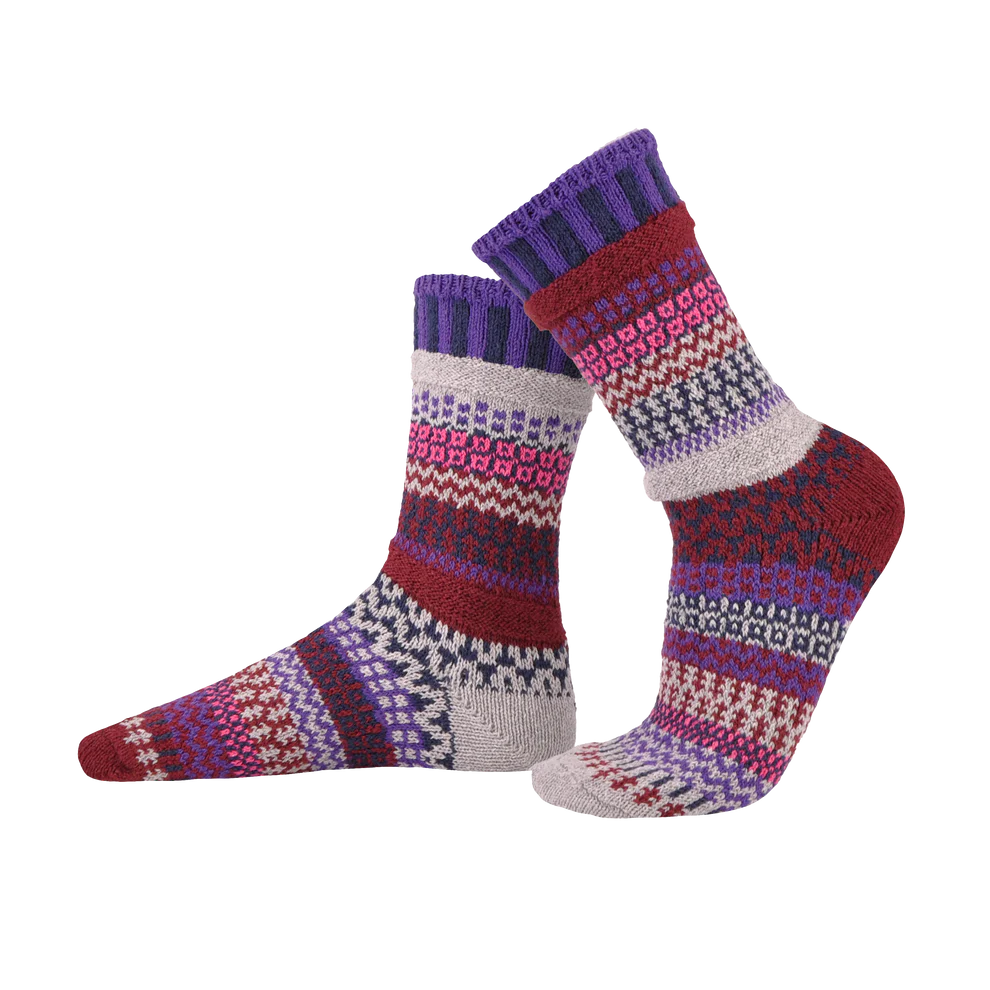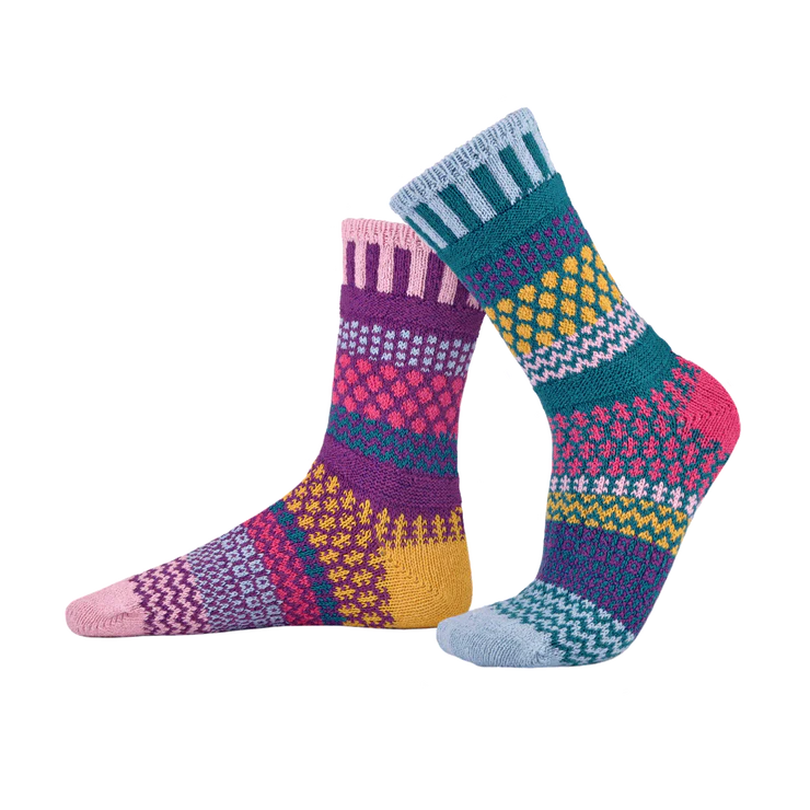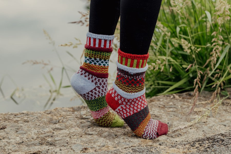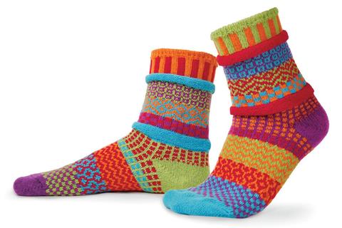 Bright, fun, tough, cozy and vibrant. Also: Mismatched! These socks are made from 100% recycled materials and are fun, comfortable and functional. They are available in a myriad of dizzying kaleidoscopic colours. As Solmate claims: Life's too short for matching socks!