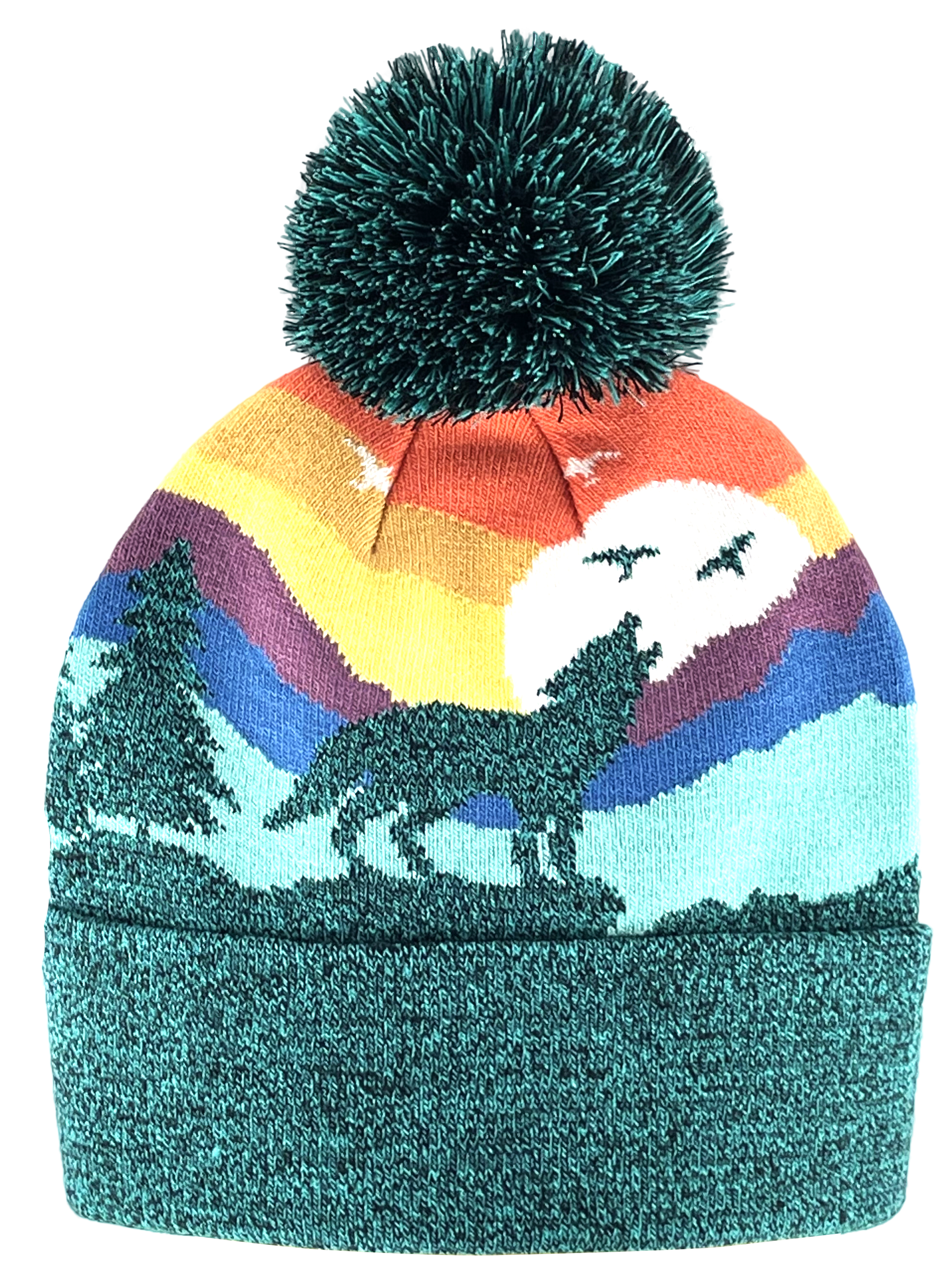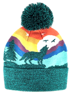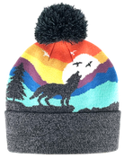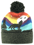Wolf Beanie Hat with Pom Pom Mountain Sunset Knit Cap: Adults